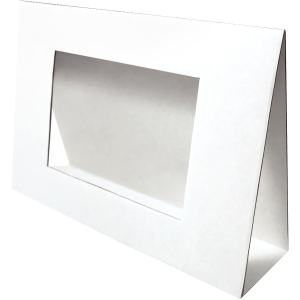 Lot de 24 cadres photo chevalet. Planches en carton blanc rigide, faciles à plier selon les pointillés pour former 24 cadres photo à personnaliser (colle nécessaire pour fixer le pliage). Emplacement pour photo 10 x 15 cm pré découpé. Peuvent être posés à l’horizontale ou à la verticale. Atelier pour un classe complète. Dimensions d’un cadre : 17,5 x 26,5 x ép.6,5 cm.