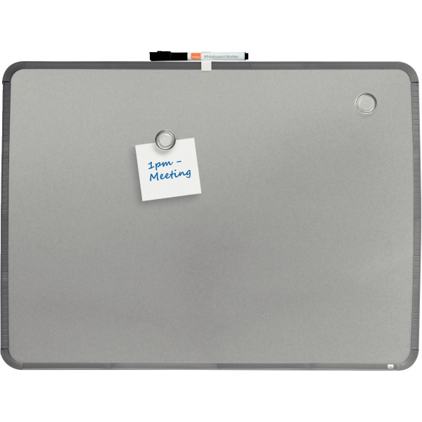 Tableau métal magnétique effaçable à sec L58xH43xEp1,6cm. Une surface originale en métal qui ne dénote pas dans un environnement design.- Idéal pour les notes et les messages de tous les jours.- Encadrement en plastique.- Livré avec 3 magnets, 1 marqueur qui se clippe.