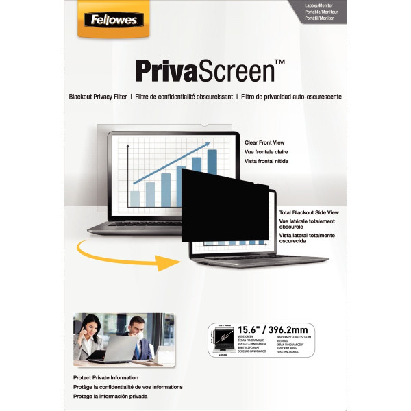 Filtre écran de confidentialité 15,6" 16:9. Pour ordinateur portable. Protégez vos informations c'est simple et rapide. Le filtre opacifie l'écran à partir d'un angle de vue latéral de 30°, la visibilité reste optimale pour la personne en face de l'écran.