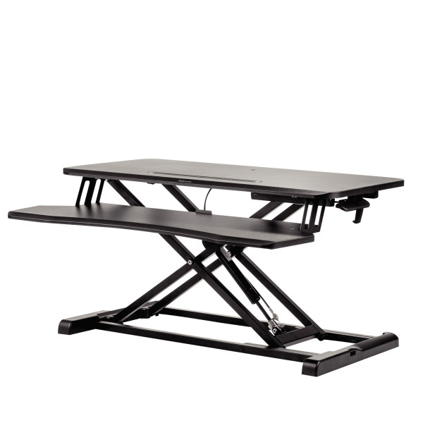 Station assis-debout Corsivo. Transition facile de la position assise à la position debout. Supporte 2 ou 1 écran ou 1 ordinateur portable. Téléphone à portée de main grâce à l'emplacement prévu à cet effet. Dim de la station: 800 x 400 mm. Dim support du clavier: 795 x 300 mm. Hauteur ajustable (min / max): 366mm (28-394mm). Capacité de charge max: 17 kg. Garantie 3 ans.